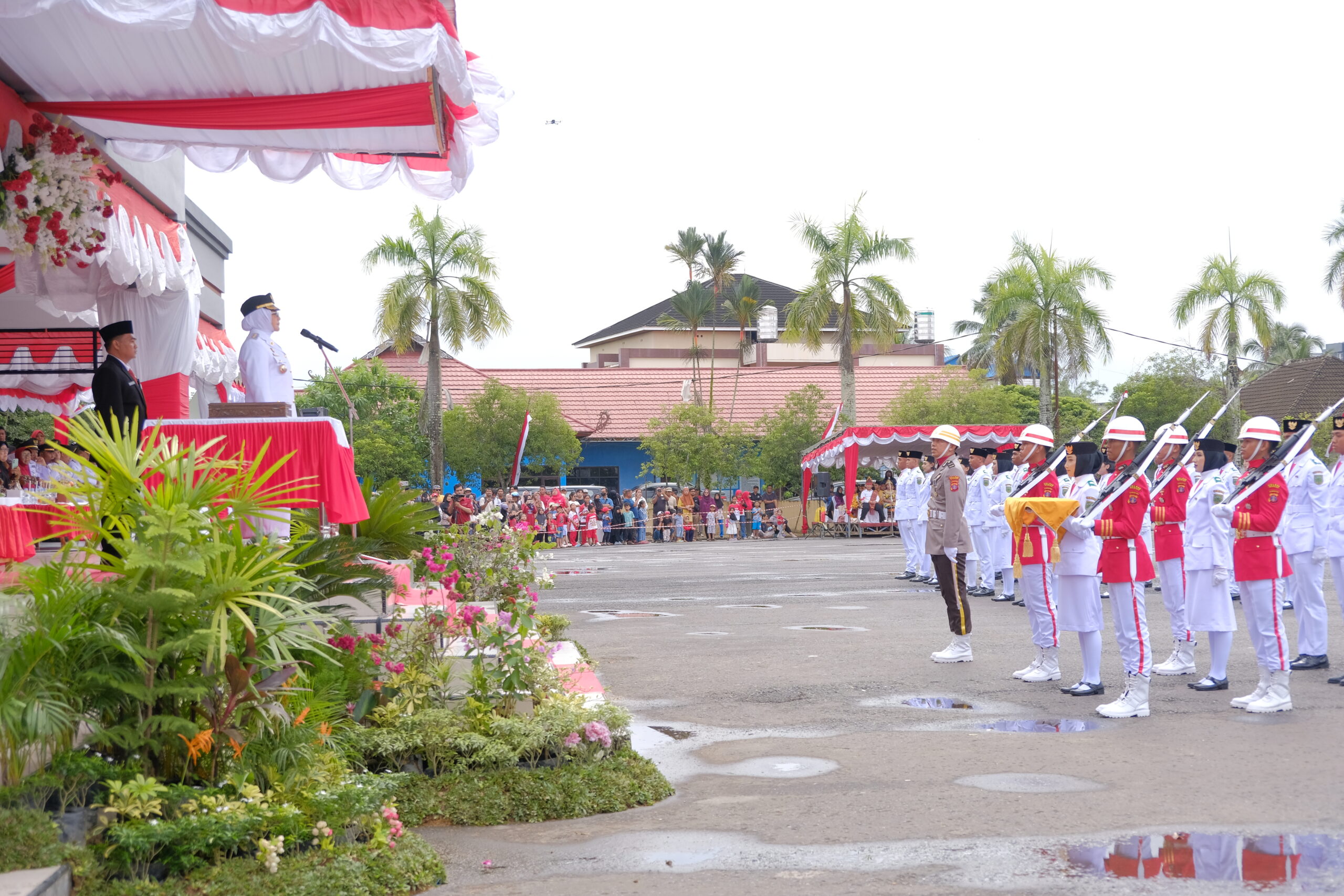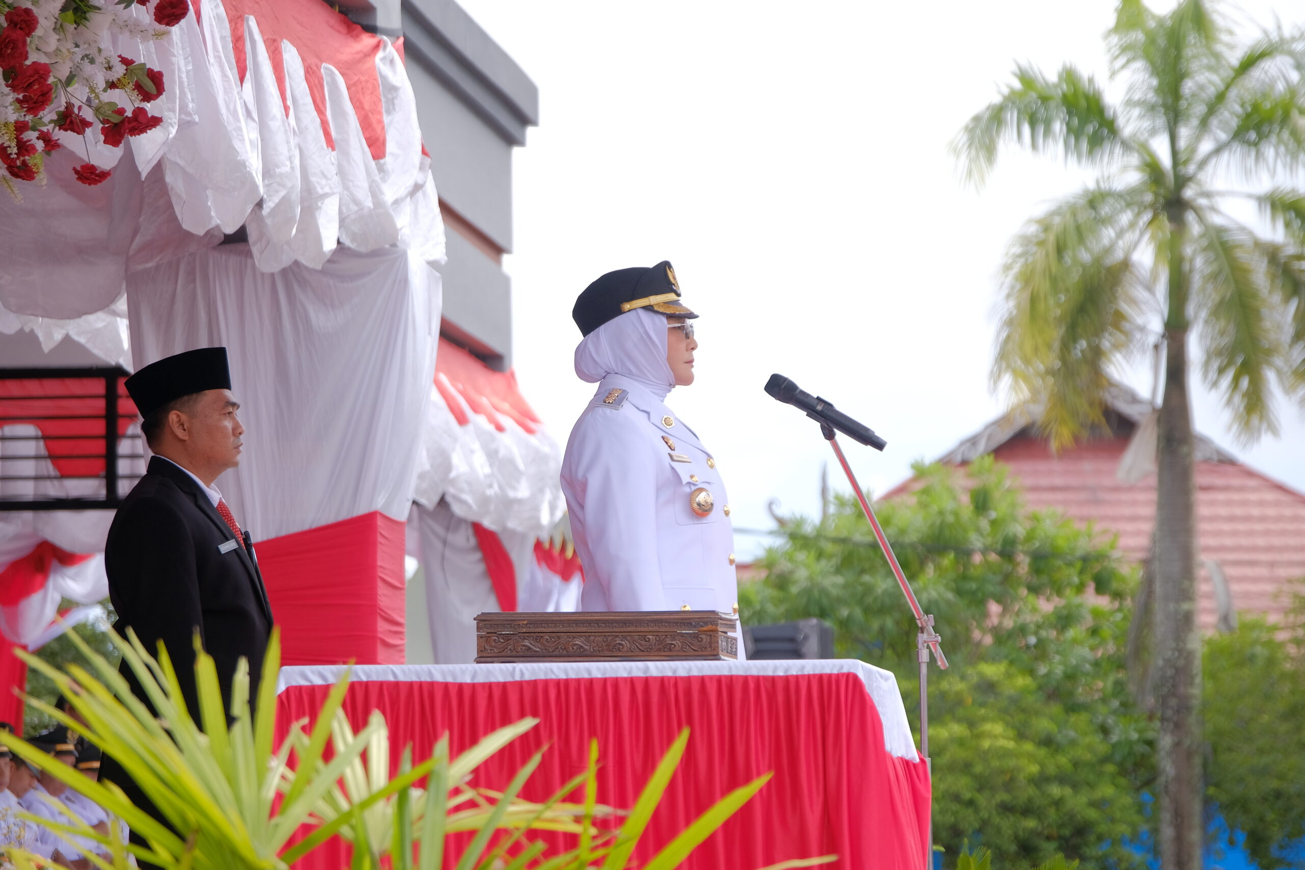 Upacara berlangsung khidmat dan dihadiri oleh Wakil Bupati Berau H. Gamalis, Ketua DPRDl Berau Dedy Okto, Sekretaris Daerah M. Said, jajaran Forum Koordinasi Pimpinan Daerah (Forkopimda), para asisten, staf ahli, kepala OPD, tokoh masyarakat, pelajar, hingga berbagai elemen masyarakat.