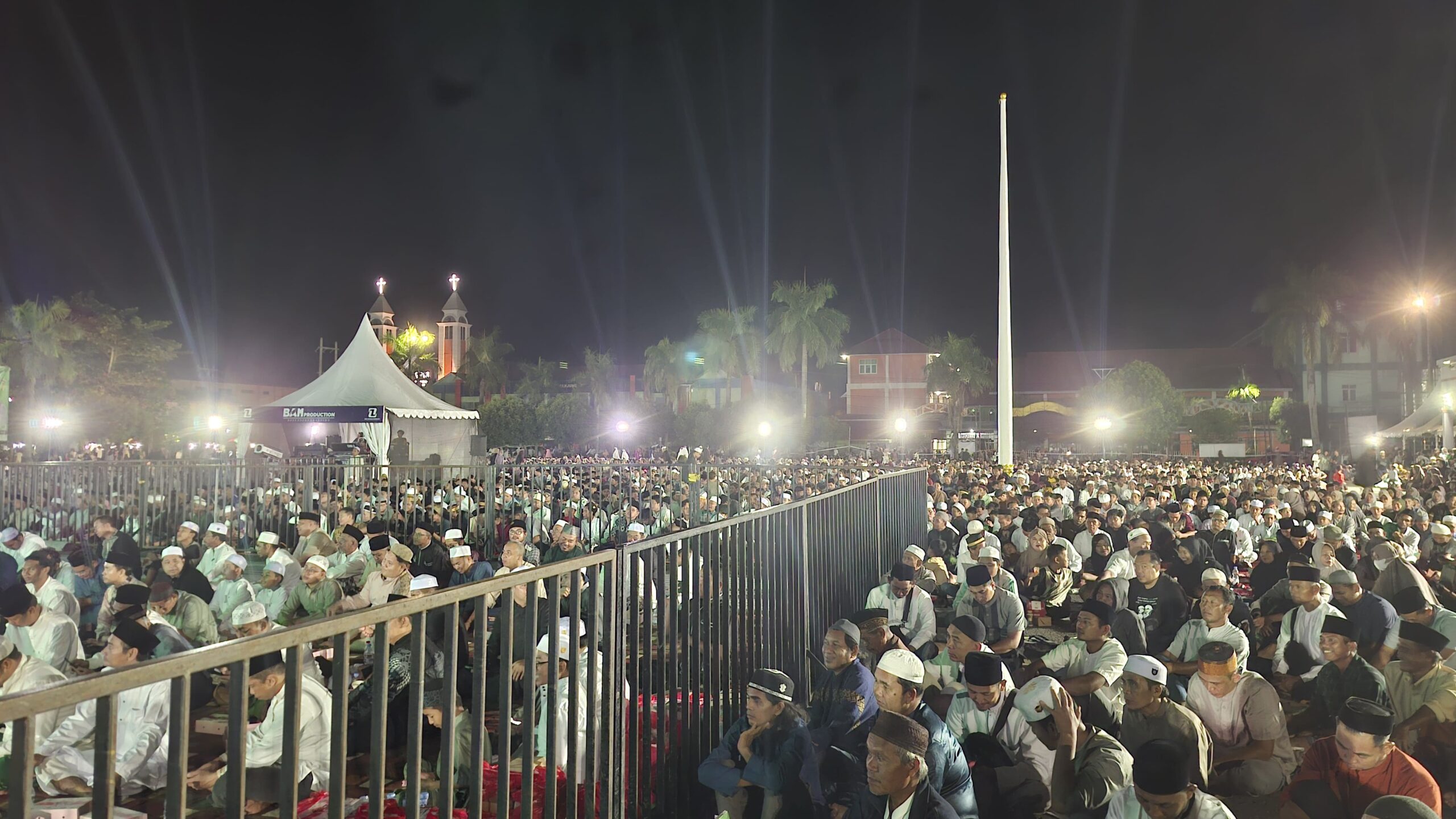 Ribuan masyarakat pun memadati Lapangan Pemuda untuk menantikan penampilan sang ustaz yang dikenal dengan gaya ceramahnya yang lugas dan diselingi humor.