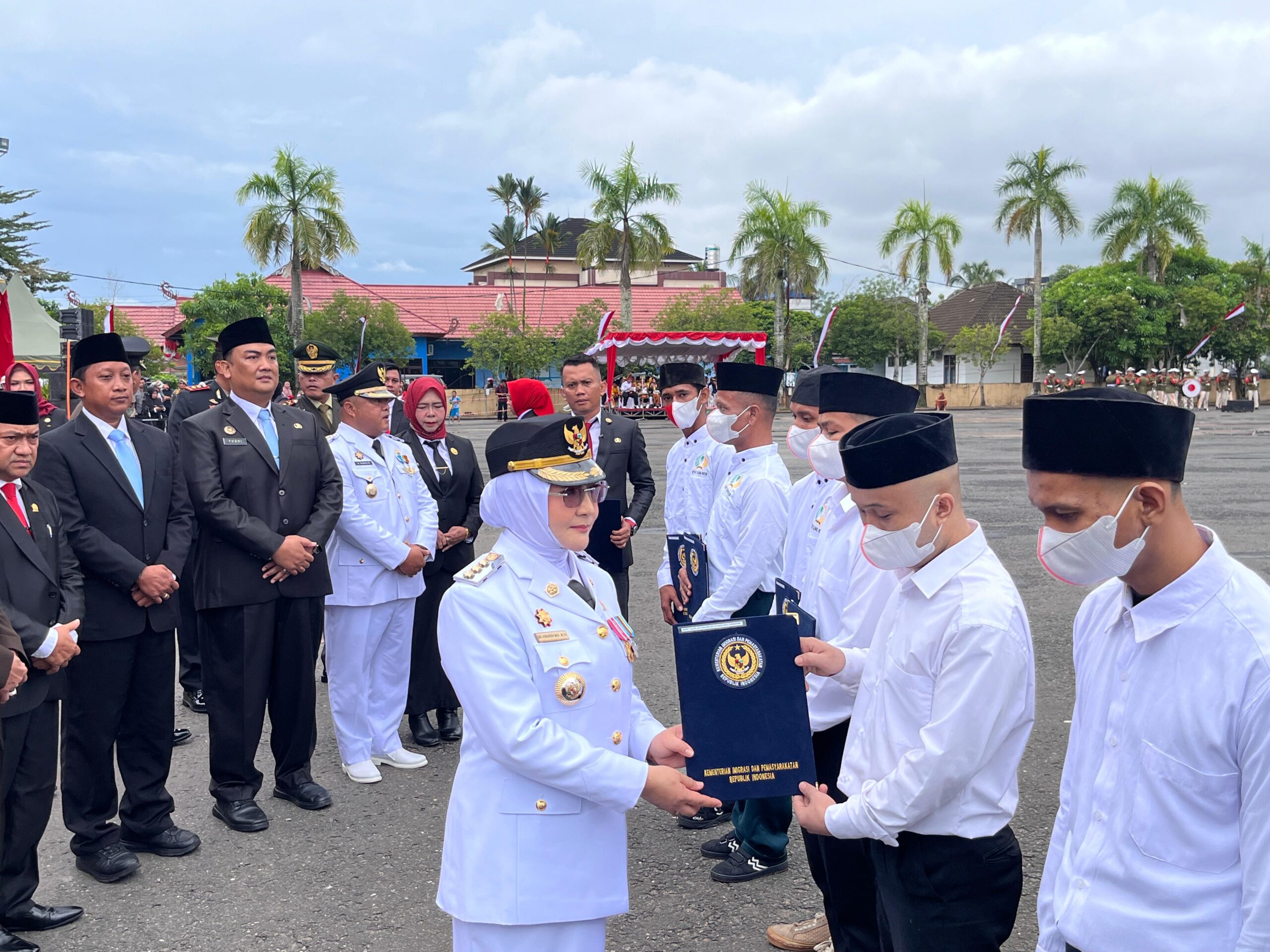 Secara simbolis, bupati berau Sri Juniarsih menyerahkan remisi ini kepada beberapa perwakilan warga binaan, usai upacara bendera di GOR Pemuda Tanjung Redeb.